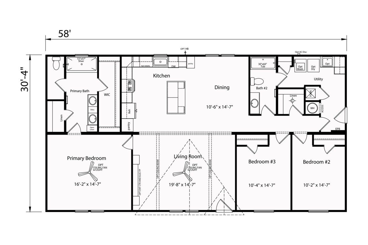 - Home Features: Garage Ready Endwall Entry Entertainment Center Kitchen Island Freestanding Bath Tub Office/Flex Room Utility Room Walk-in Showe